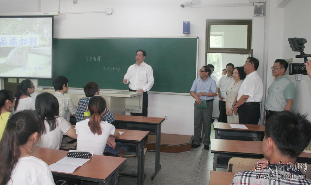 在《食品添加剂》课堂上,李元元语重心长,与师生进行了一番长谈。他说:食品科学与工程学院是学校因学科专业调整而成立的学院,食品科技、食品安全对于人类生存至关重要。成立学院后,28365365tw五大联赛相关学科就能融到全国食品科学的研究当中,这个学科是国家的特色专业,重要的是新的学院要进一步强化食品科学创新人才的培养。他希望:一是老师要进行教学内容、教学方法的研究探讨,进一步改善和提高教学效果和教学质量;二是改革上课方式,学生主动运用互联网技术,检索图书馆数据库,主动研究所学的领域。师生一起分析解决,探究式、讨论式、启发式地学习;三是通过提高教学质量水平、科学研究水平,极快地发展食品学科,争取在全国学科排位不断靠前,不断影响扩大;同时让广大学生受益。